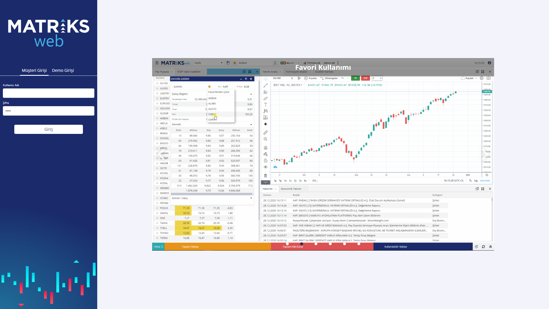 yepyeni bir fiyat izleme ve işlem platformu geliştirildi. Uygulamayla ilgili detaylı bilgiye www.matrikswebtrader.com adresinden ulaşabilirsiniz. · İşletim sisteminden bağımsız