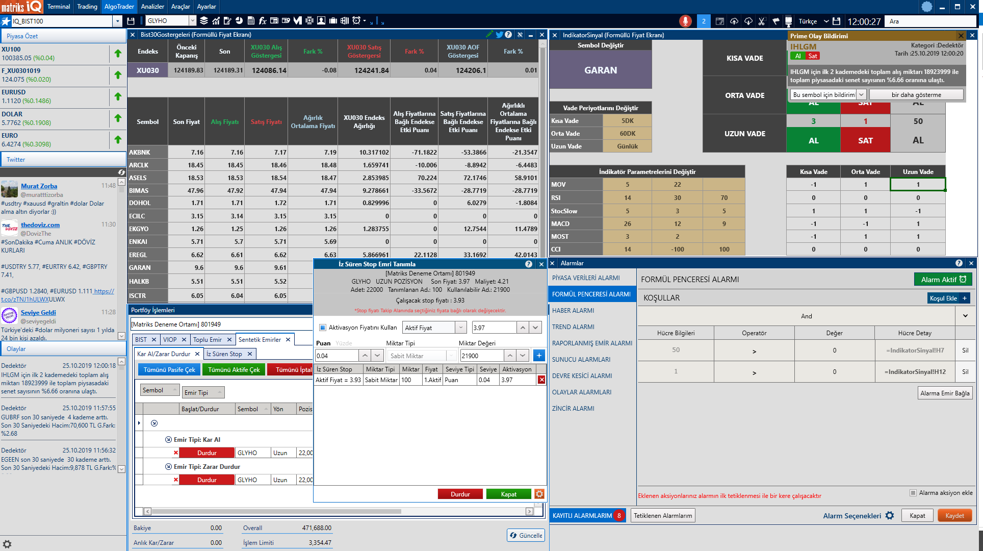 MatriksIQ üzerinde takip ettiğiniz tüm fiyat hareketleri, haberler, uyarılar için alarm tanımlayabilir, alarmlarınızın hangi tarih-saat aralığında çalışacağını belirleyebilir, alarmlar arası zincir oluşturabilir ve alarmınıza emir ve aksiyon bağlayabilirsiniz.
